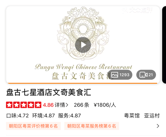 某评上,这家酒店下属餐厅人均消费从600元到1800元不等。