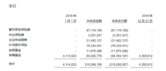 但值得注意的是,厦门国际银行还有其他福利,合计为六险四金,去年实际支付为2.15亿:
