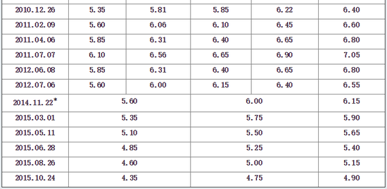 表:1991年-2015年历年银行贷款利率;数据来源:央行