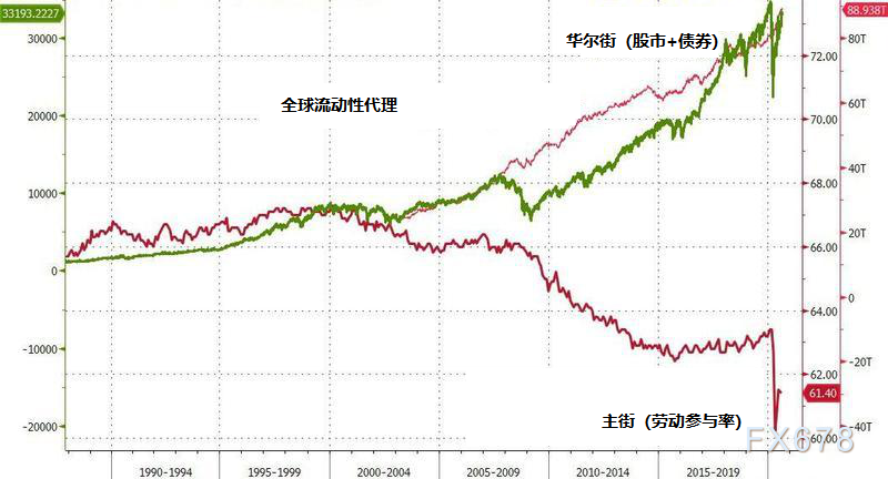 在美联储流动性和国会救助的推动下,即便劳动力市场的崩溃,但是金融资产仍膨胀至令人咂舌的水平,纳指更是39次刷新纪录高位。