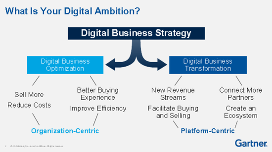 根据Gartner的分析,未来数字化时代中,以客户为中心的企业类型分为算法、平台、工匠型、订阅型四类企业。企业成功的核心在于能否搭建平台型生态系统,把价值观从独立企业向生态系统转变。在搭建平台型生态系统过程中,一方面可以通过新的销售收入和渠道、新的客户交互、拓展产品和服务来提升生态系统中的合作伙伴。另一方面,通过合作、创新、匹配来成为生态系统。