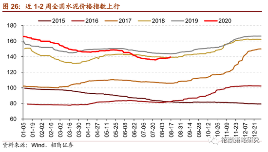上半年基建项目审批投资额实现翻倍增长,预计下半年直至明年上半年有较多的基建项目持续落地,三季度和四季度基建项目投资完成额依然具有较大的提升空间。与此同时,地产投资和制造业投资也处于逐季恢复之中,水泥和钢材价格具备继续修复的动力。但由于全球疫情尚未完全得到控制以及存在反复的风险,若经济复苏节奏过慢,水泥和钢铁等大宗商品价格上行空间将会得到压缩。