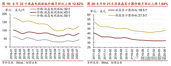 一方面,面板终端需求提升驱动价格继续上涨。7月份,TV LCD当月出货量为23.7百万个,环比小幅上行;NB LCD当月出货量36.3百万个,同比增长55.13%;显示器LCD出货量14.4百万个,同比上行22.03%。根据Sigmaintell预测,三季度全球整机TV采购量将继续环比上行31.5%。我们认为,由于疫情的影响,远程办公,在线教育等领域的兴起,大幅提升了对于显示器需求,而随着三季度销售旺季的到来,面板价格有望进一步上涨。