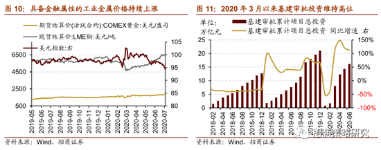 今年三月以来,在货币市场流动性极为充裕的环境中,大宗商品的金融属性率先发挥作用,黄金和有色金属价格出现快速上涨,尤其是黄金价格屡创新高,以铜铝为代表的有色金属已经出现明显涨价。疫情过后宏观经济基本面正处于逐季回暖中,国内基建、地产和制造业投资已经出现明显修复。伴随着投资项目的逐一落地,工程机械(挖掘机量价齐升)、建筑(订单增长)、重卡(销量提升等)板块景气度持续抬升,工业金属下游行业需求保障性较强。目前大多数工业金属库存则是低位波动,在疫情的干扰下部分矿山出现供给短缺的现象,库存压力不会成为其价格上行的阻碍。