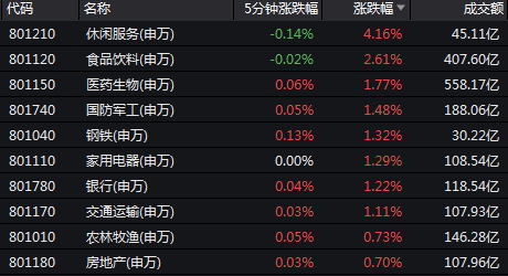 8月28日上午,申万一级行业中,休闲服务板块领涨两市,半日上涨超过4%,食品饮料板块紧随其后。其中,酒鬼酒涨停,洋河股份、泸州老窖、水井坊等半日涨幅超过5%。另外,医药生物、国防军工、家用电器等板块也涨幅居前。