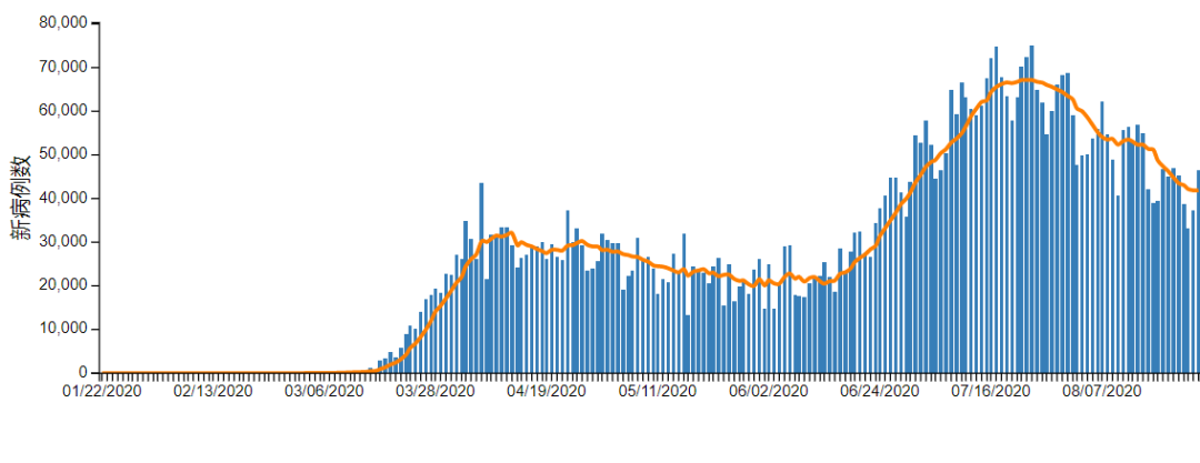 美国新冠病例仍以每日近5万的数字在增加,据美国疾控中心数据,现在美国病例数接近580万,死亡病例近18万,就在8月25日还有46393个新增病例。