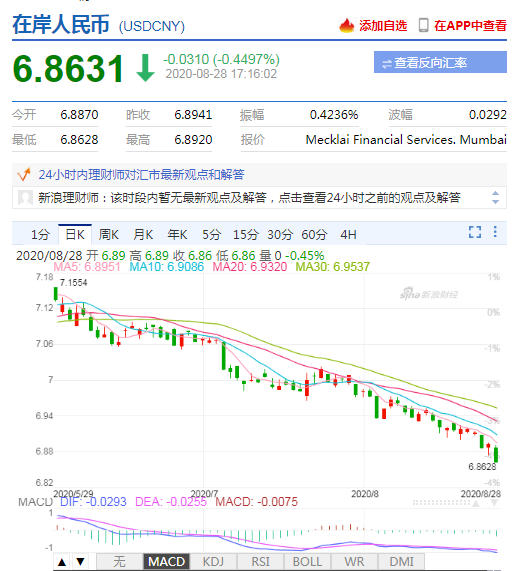 热点栏目离岸人民币兑美元升破6.86关口,为1月以来首次,日内涨约300个基点。在岸人民币逼近6.86关口。
