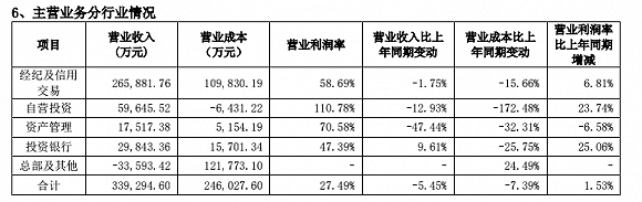 经纪及信用业务方面,虽然上半年公司新开客户43万户,客户总数达1155万户,实现代理买卖证券业务净收入13.58亿元,同比增长10.98%。但整体的经纪及信用业务收入依然小幅下滑1.75%,至26.59亿元。