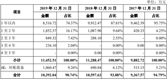 根据招股书,报告期内,青云科技应收账款余额分别为9882.72万元、1.13亿元及1.15亿元,占当期营业收入的比例分别为41.31%、40.06%、30.39%。应收账款周转率分别为3.00、2.82、3.59。