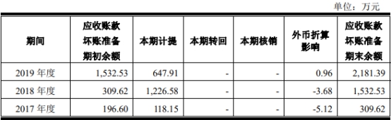 2015年至2019年,华安鑫创应收账款各期坏账准备计提分别为36.69万元、114.24万元、118.15万元、1226.58万元和647.91万元。截至2015年末、2016年末、2017年末、2018年末和2019年末,该公司应收账款坏账准备期末余额分别为77.96万元、196.60万元、309.62万元、1532.53万元和2181.39万元。