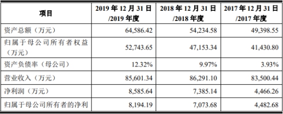 来源:2019年8月8日报送的申报稿2020年两版招股说明书显示,2017年,该公司净利润和归属于母公司所有者净利润分别为4466.26万元和4482.68万元。