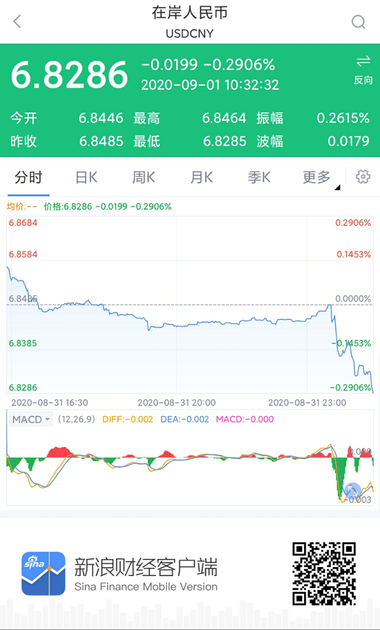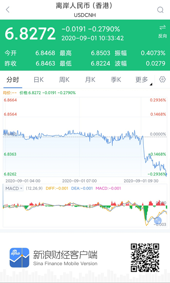 热点栏目9月1日,离岸、在岸人民币双双升值收复6.83关口,续创去年7月以来新高。