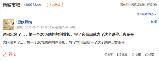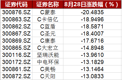 《每日经济新闻》记者注意到,在创业板注册制8月24日落地当日,即有一只创业板个股跌幅超过14%,之后在8月26日~8月28日也有多只刚上市不到5个交易日的“C”字头创业板个股跌幅超过20%,而今日的新城市则是在真正意义上实现了20%的跌停,创下了新的创业板历史纪录。