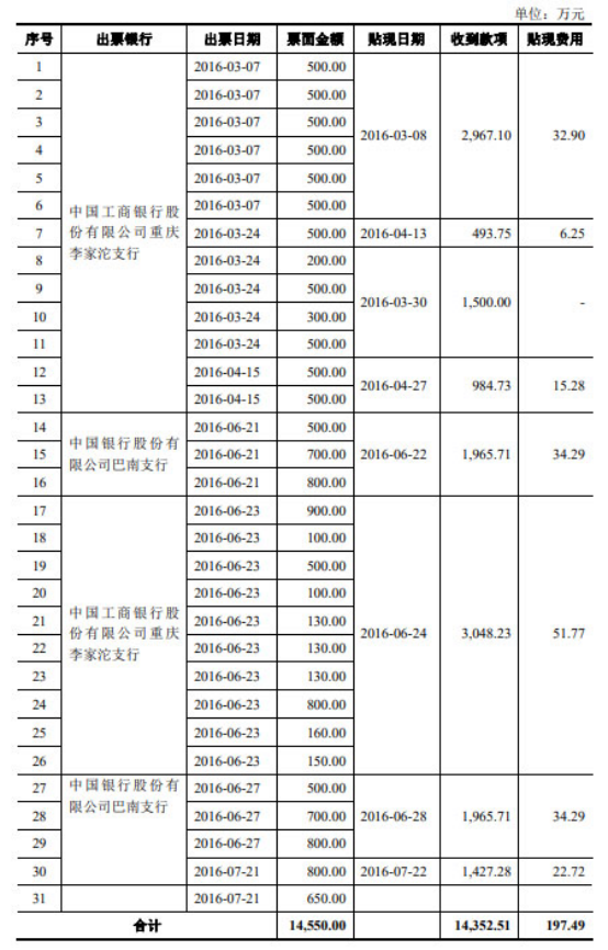 四方新材报告期内存在违规票据融资共31笔,发生额为1.46亿元。