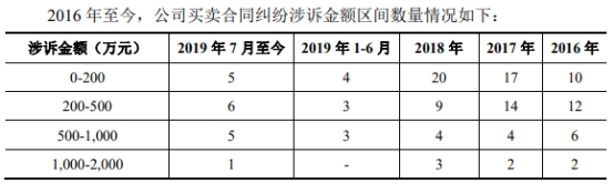 其中公司买卖合同纠纷涉诉金额在1000万元-2000万元之间的合计8起,涉诉金额在500万元-1000万元之间的合计22起,涉诉金额在200万元-500万元之间的合计44起,涉诉金额在0-200万元之间的合计56起。