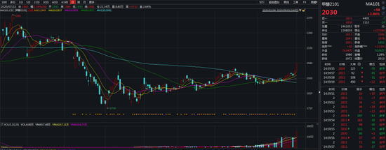 热点栏目近年来,在进口大幅增加的大背景下,甲醇利润不断下滑,但最近因甲醇装置停车检修,下游开工回暖,市场对未来相对看好,致使甲醇期价再度拉涨,持仓量大幅增加,市场热度也被点燃。在上周冲高回落后,本周主力合约再次拉涨,今日主力01合约报收2030,上涨58,涨幅为2.94%。
