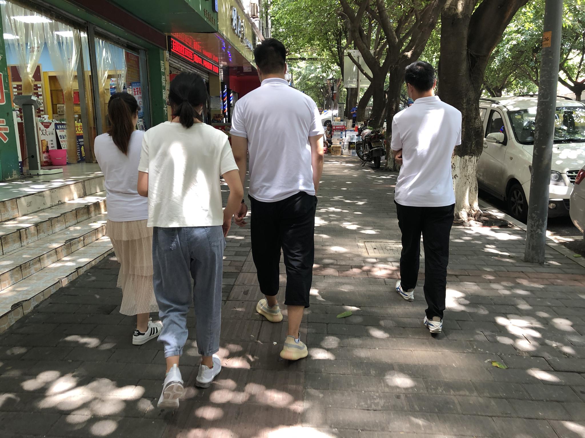 吴晓月(左一)、赵军(左三)与上官正义(右一)见面。澎湃新闻记者 王鑫 图