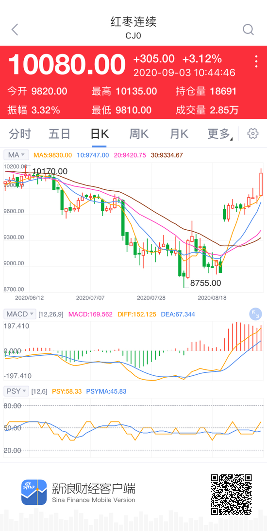 热点栏目9月3日,红枣主力合约早盘拉升涨逾3%。