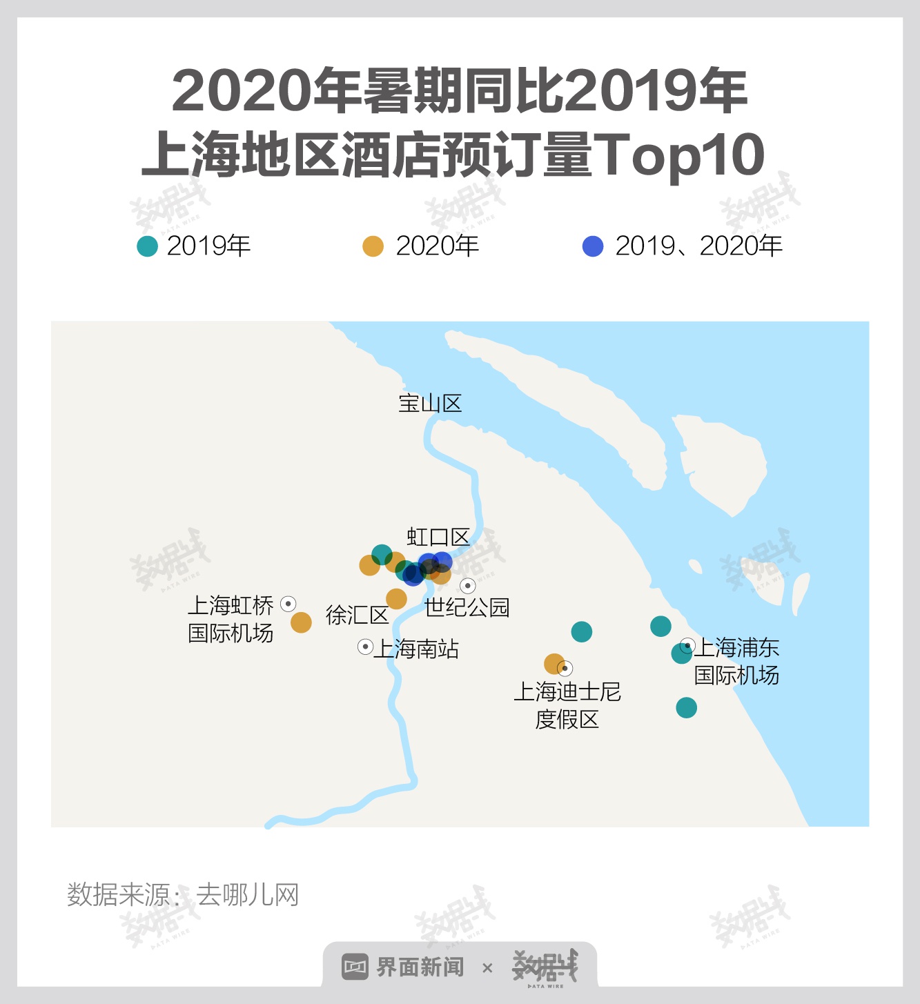 另外,对比分析去哪网平台上2019年和2020年7、8月份预订量最火的前十家上海酒店,可以看出上海酒店消费行为在疫情后出现了一系列变化。