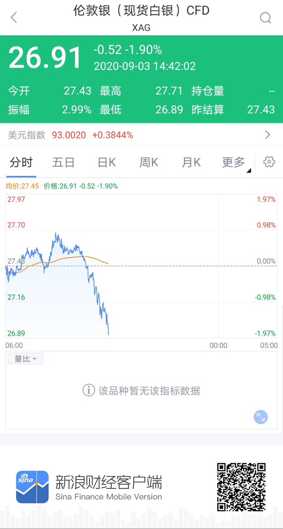 现货黄金跌破1930美元/盎司 现货白银失守27美元关口