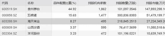 从而从今年中报数据看,食品饮料前5大重仓股中,贵州茅台、五粮液、海天味业、山西汾酒、洋河股份都被机构重仓持有。