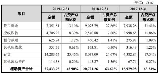 2017年-2019年,惠泰医疗存货账面价值分别为4382.84万元、8037.09万元和1.43亿元,占资产总额的比例分别为17.34%、24.67%、25.46%;应收账款分别为2998.65万元、2540.88万元和4706.22万元,占资产总额的比例分别为11.86%、7.80%、8.39%。