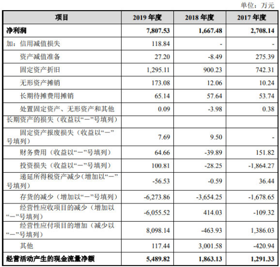 惠泰医疗表示,公司主要利润主要来源于公司之全资子公司湖南埃普特。2019年,公司经营活动产生的现金流量净额较净利润偏低,主要原因系当年存货增加较多,导致经营活动产生的现金流净额较小。