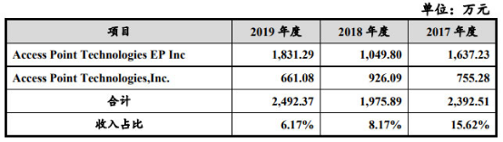 各期,惠泰医疗对Access Point Technologies,Inc.和Access Point Technologies EP Inc销售收入合计分别为2392.51万元、1975.89万元、2492.37万元,占收入比例分别为15.62%、8.17%、6.17%。