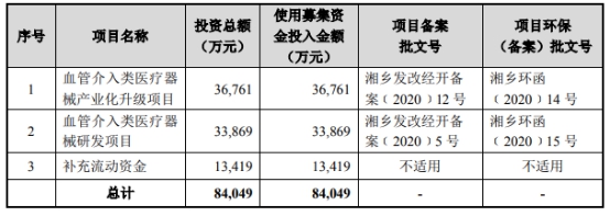 惠泰医疗拟在上交所科创板公开发行新股不超过1667万股,占发行后股本比例不低于25%。拟募集资金8.40亿元,其中3.68亿元用于“血管介入类医疗器械产业化升级项目”,3.39亿元用于“血管介入类医疗器械研发项目”,1.34亿元用于“补充流动资金”。