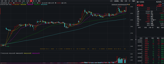 但是最近几天,受不断传来的超强台风登陆国内的消息刺激,豆一价格再度拉涨,今日主力01合约报收4548,上涨134,涨幅为3.04%。
