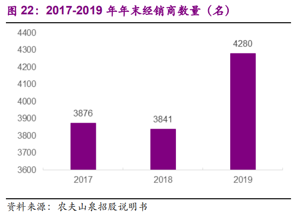 农夫山泉对于渠道的把控还是蛮严格的。在不断拓展经销商的数量的同时,每年还会做严格的评估和筛选,违反协议或者业绩不好的的就拜拜,在17、18、19年一共终止了近三千名经销商的合作。