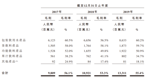 直到前几天准备上市,披露招股书,大家才知道,原来农夫山泉年收入超过240亿元,而且毛利率60%、净利率20%,2019年净赚50亿,远超国内同行,可以说是赚得多,涨得快。
