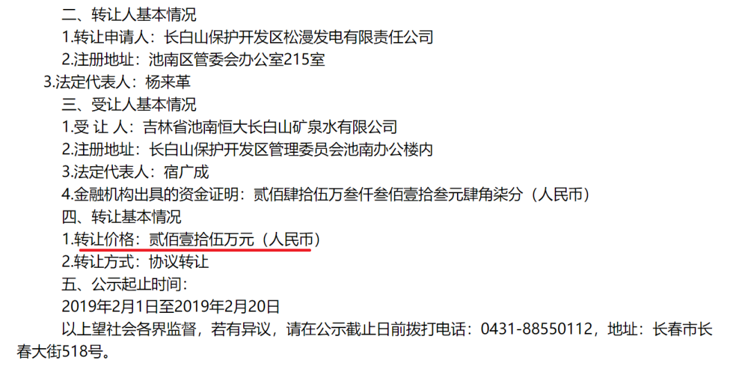 2019年,恒大长白山矿泉水有限公司曾经以215万元的价格获取了长白山天然矿泉水的探矿权。