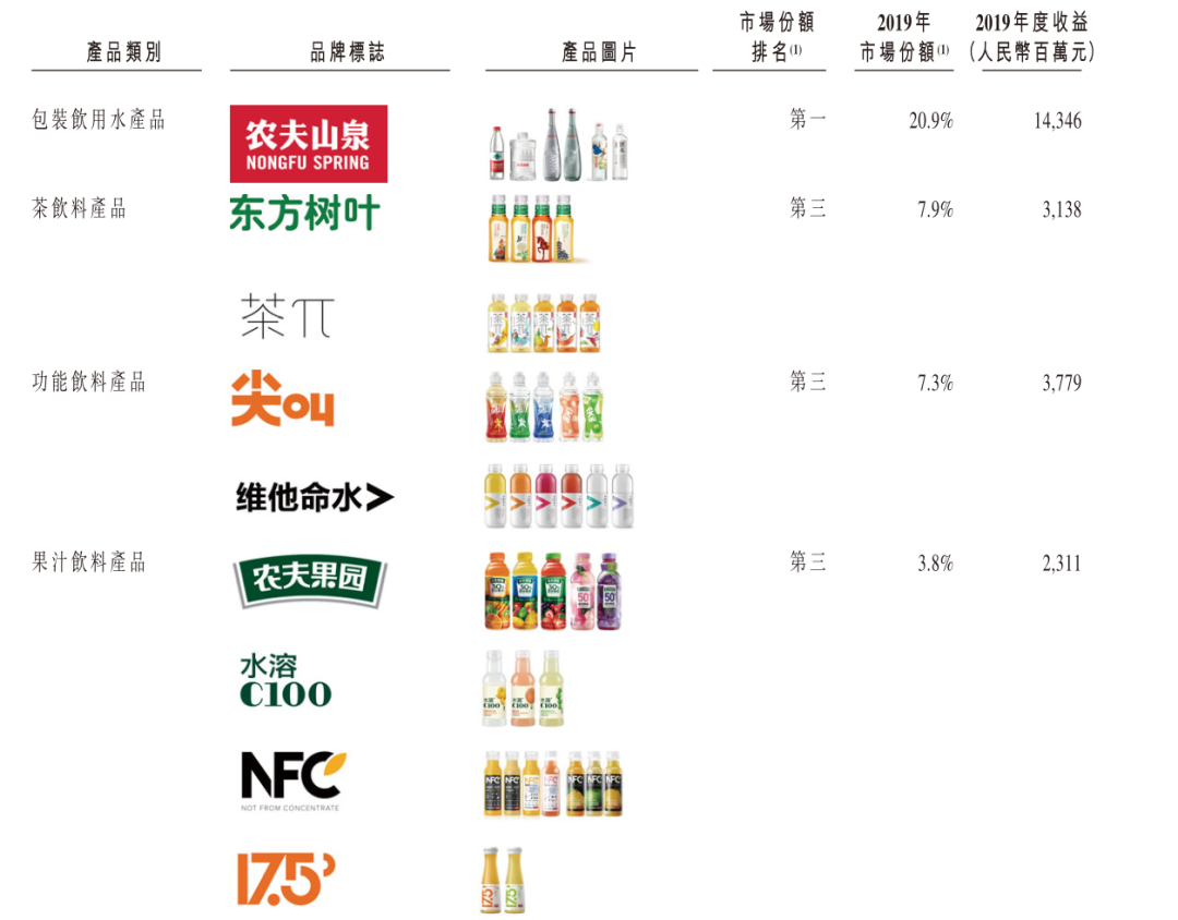 其中,饮用水系列产品贡献了总收入的6成,是农夫山泉当之无愧的形象代言人。