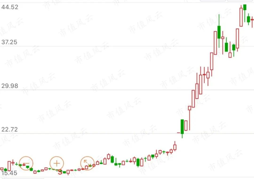 上市公司的股价也没有辜负这份报告,当天便喜迎涨停,并且一路涨幅不断,截至收稿日,股价又创了新高,达到了44.52元/股。