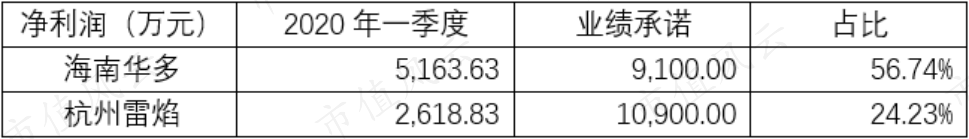 经过对比可以看出,2020年一季度,海南华多的净利润规模就已经占到全部业绩承诺的56.74%,杭州雷焰的净利润规模虽然小点,但也占到了全部业绩承诺的24.23%。