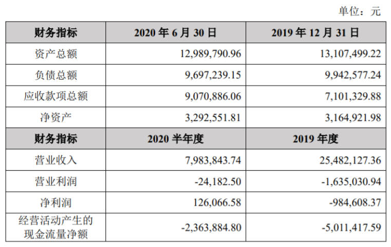 此前公告显示,江苏亚银2019年营业收入2548.21万元,营业利润亏损163.50万元,净利润亏损98.46万元;2020年上半年营业收入798.38万元,营业利润亏损2.42万元,净利润12.61万元。