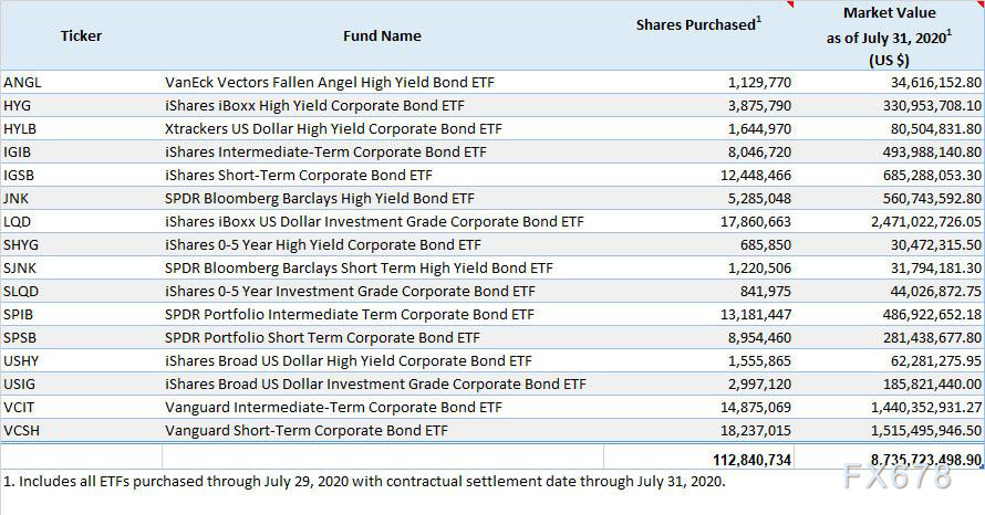 根据美联储在其二级市场企业信贷工具下的持有量分类,截至7月31日,美联储共持有各类ETF共112840734股。
