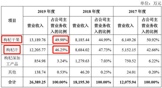 公司产品主要包括枸杞干果、枸杞汁和枸杞深加工产品 3 大类。