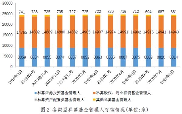 同时,截至今年8月底,存续私募基金管理人为24447家,较上月减少10家;管理基金数量为89784只,较上月增加1733只。其中,私募证券投资基金管理人有8814家,较上月减少6家;私募股权、创业投资基金管理人有14943家,较上月增加2家;私募资产配置类基金管理人有9家,与上月持平;其他私募投资基金管理人有681家,较上月减少6家。