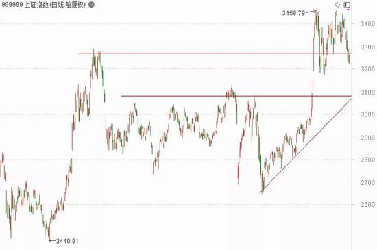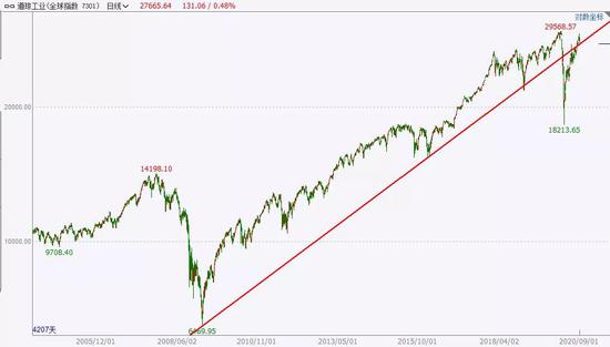 值得注意的是,美股道琼斯指数也处于敏感位置,位于2009年以来的趋势线上运行,需要提防其发生向下变盘。