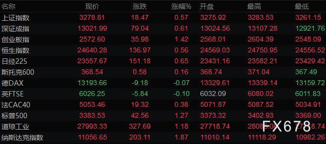美股三大指数集体收涨,道琼斯指数收盘上涨327.70点,涨幅1.18%,报27993.33点;