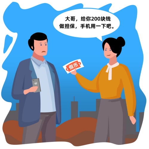 购买东西付款时,不法分子先用真币支付,商家验钞后不法分子表示不买了,接着又反悔,再付款的时候就使用假币。不法分子利用我们一时的疏忽大意,用真钞换假钞,进行快速地调包。