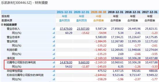 Wind数据显示,乐凯新材近3年归母净利润均保持在1亿元左右,波动不大。不过2020年中报显示,上半年归母净利润同比下降达145%。