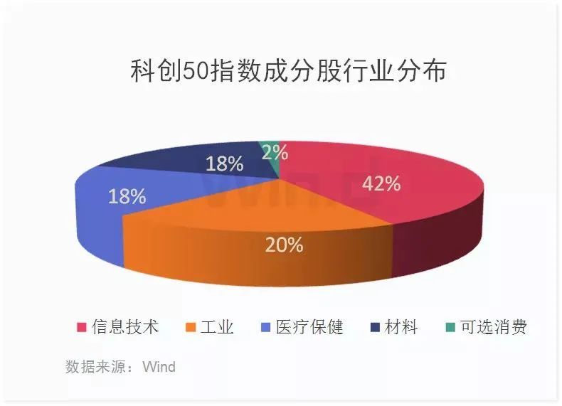 Wind数据显示,截至9月13日,科创50指数成分股中,信息技术行业有21家,占比42%;工业板块有10家,占比20%;医疗保健和材料板块各有9家,占比均为18%;可选消费板块有1家,占比2%。