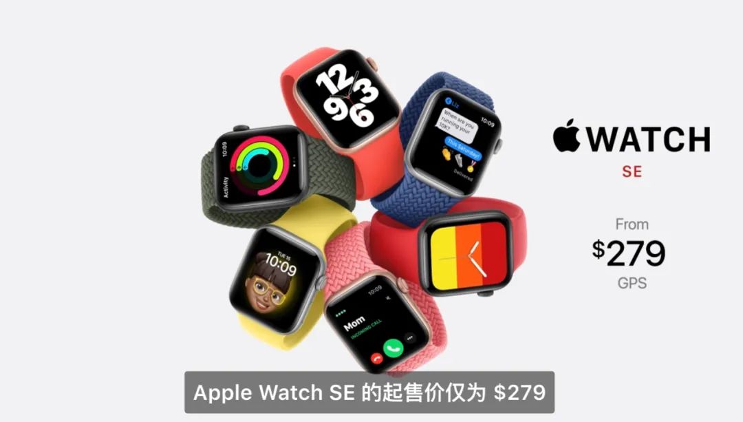 值得一提的是,苹果首次发布了廉价版的手表——Apple Watch SE,屏幕尺寸与Apple Watch Series 6相同,搭载S5芯片。Apple Watch SE起售价为279美元,约合人民币1890元,本周五正式发售。