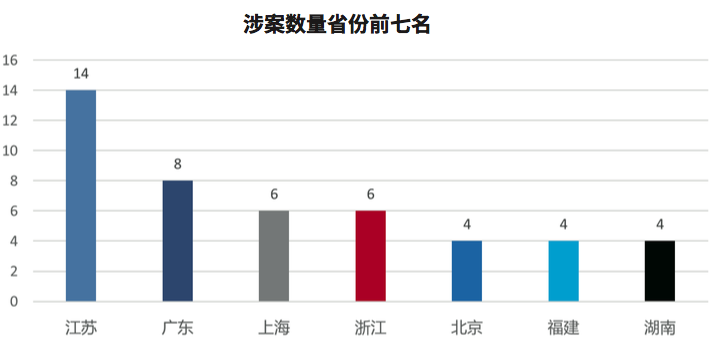 从地域分布来看,涉证券类行政处罚的上市公司主要集中在东部沿海地区,如江苏省、浙江省、上海市、广东省、山东省,与上市公司在这些省份较为集中有关。