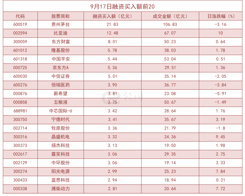 从融资资金买入金额来看,共有118只个股买入金额超亿元,其中贵州茅台(21.83亿元)、比亚迪(12.48亿元)、东方财富(8.01亿元)居前三位。
