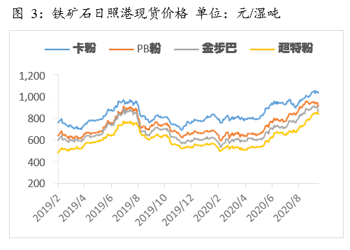 根据 Mysteel 统计,钢厂进口矿平均可用天数为 26 天,环比增加 2 天。虽然近期铁矿石行情下跌,市场情绪不佳, 但临近国庆长假,钢厂存在补库需求,使得现货价格相对比较坚挺,基差持续扩大。预计短期内铁矿石价格将震荡运行。