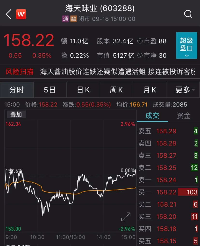 不过,朱丹蓬观察分析指出,作为调味品行业体量最大、利润最高的企业,海天味业在二级市场上曾受到资本的追捧和青睐,经历了近半个月的股价回调后,海天味业市值大幅缩水。如果此时在消费端屡次出现食品安全问题,这将直接影响海天味业的生产经营情况,或将进一步对股价和市值产生冲击。